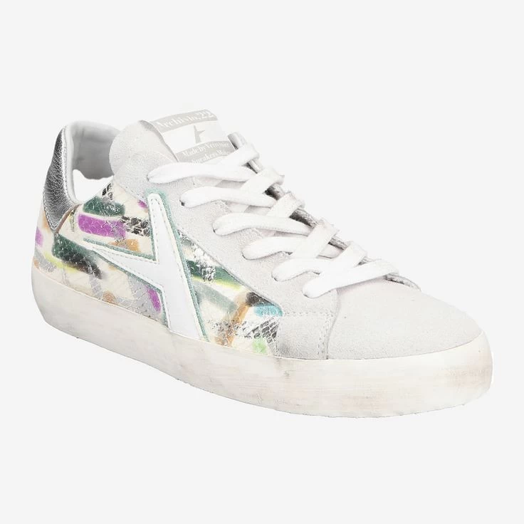 Wilder Animal-Style – sportlicher Sneaker- oder angesagter Vintage-Look? Hier gibt’s das Gesamtpaket! Mit Archivio22 genießen Sie Ihren ganz individuellen, ausdrucksstarken Style! Die italienische Manufaktur setzt außerdem gekonnt auf Kontraste, denn diese machen den Look erst richtig spannend! Dieser Sneaker aus weißem Veloursleder ist durch Leder in Reptiloptik veredelt, und durch eine lässige Used-Look Sohle in spannenden Kontrast gesetzt. Dieses Modell ist eine kleine, verspielte Liebeserklärung an Fashion als Kunstform!