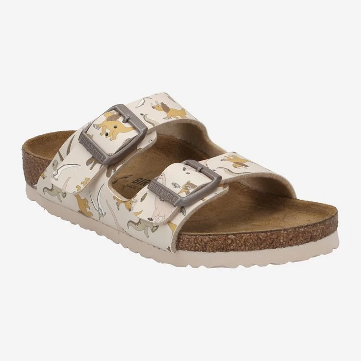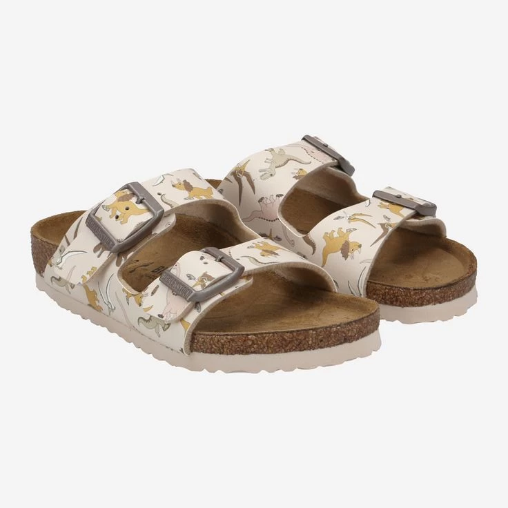 | Merkmale | Metallverschluss, Logoprägungen, legendäres Korkfußbett, EVA-Sohle, Allover-Design mit Dinosaurier-Druck, schmale Weite |