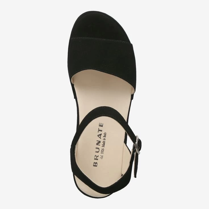 Brunate stellt diese Sandalette in hoher Qualität und in präziser Verarbeitung her. Das schwarze Veloursleder passt sich Ihrem Fuß flexibel an, und veredelt zusätzlich den keilförmigen Absatz. Durch das zeitlose Design ist dieses Modell ein beliebter Begleiter für zahlreiche, bevorstehende Sommer Saisons!
