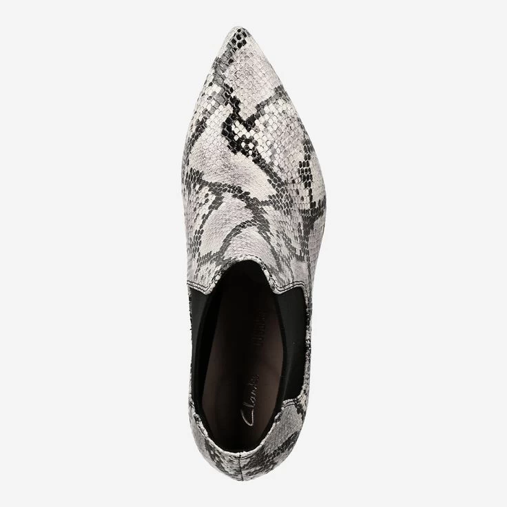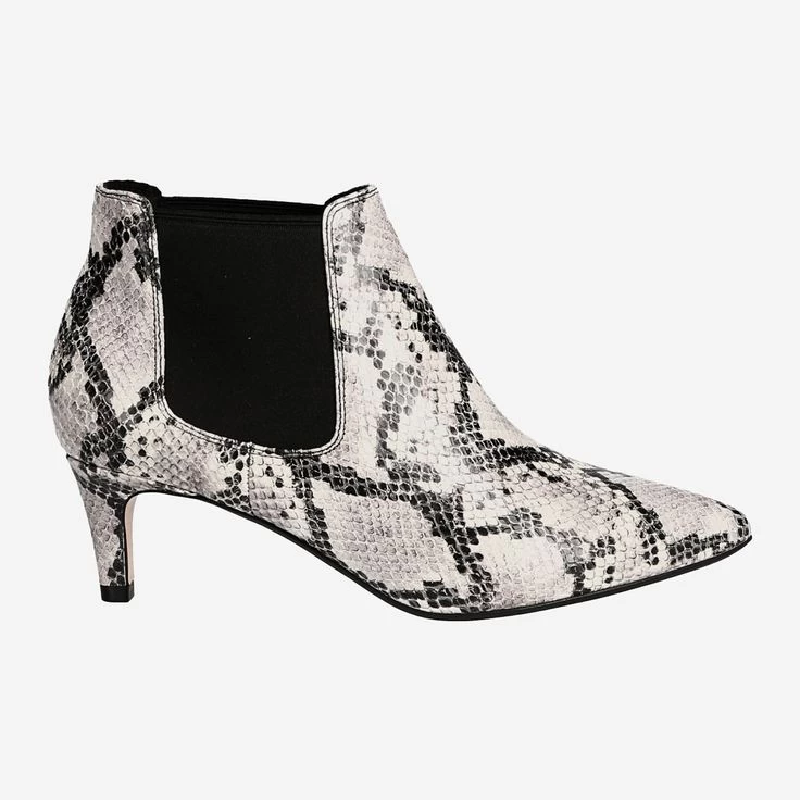 Tänzeln Sie mit dieser hochmodernen Stiefelette Richtung Zukunft und hinterlassen Sie dabei einen Eindruck, der durch die kühle Eleganz, für die der Reptilien Look steht, auf ganzer Linie beindruckt!