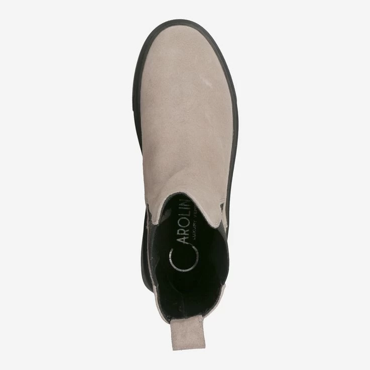 Gestalten Sie im Handumdrehen Ihren neuen Statement-Look! Diese italienischen Chelsea-Boots aus dem Hause Donna Carolina punkten durch exzellentes, beiges Veloursleder, das einen gekonnten Kontrast zu den schwarzen Stretcheinsätzen sowie der rutschfesten Gummisohle bildet. Eine Logoprägung im Fersenbereich rundet den Look edel ab.