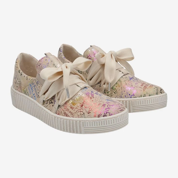 | Merkmale | Wechselfußbett „Best Fitting“, für Einlagen geeignet, Lettering In Regenbogenoptik, Stretcheinsätze, Schleifenapplikation, Plateausohle, atmungsaktiv |