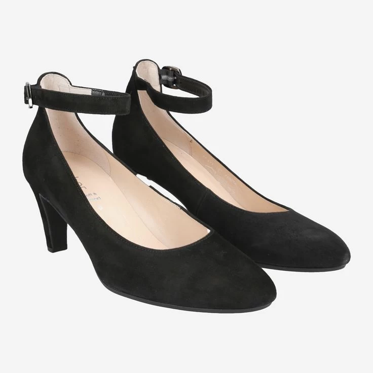 Stil ist Ausdruck von Persönlichkeit. Kennzeichnend für Klasse und Eleganz ist das Design dieses schwarzen Veloursleder-Pumps von Gabor. Der Fesselriemen schenkt Ihnen zusätzlichen Halt und betont ganz spielerisch Ihre Schokoladenseite!