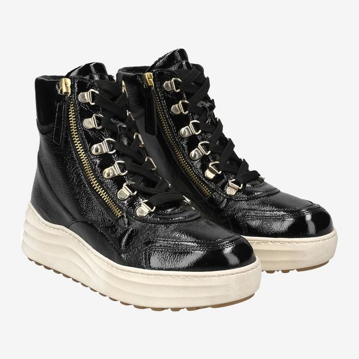 | Merkmale | Warmfutter, Wechselfußbett, für Einlagen geeignet, Reißverschlüsse, Plateausohle, Keilabsatz, Lederapplikationen, gepolsterter Schaft |