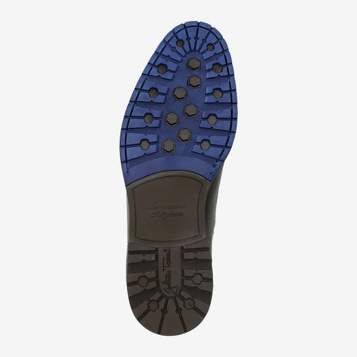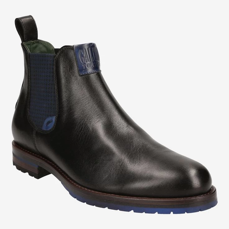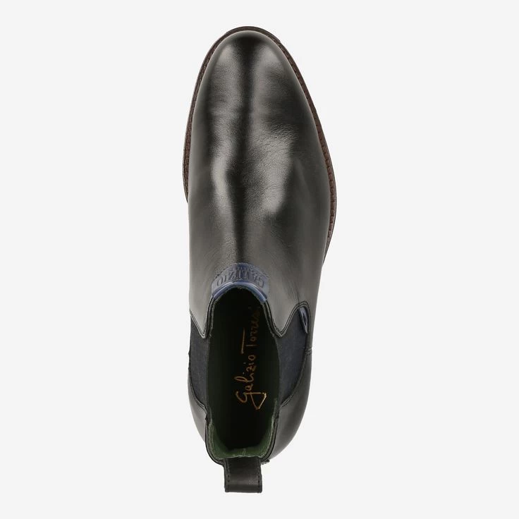 Besonders elegant und maskulin zeigt sich dieses Modell der italienischen Marke Galizio Torresi. Seit 1979 weiß das Familien unternehmen den Ansprüchen seiner Träger zu genügen. Handwerkskunst und moderne Designs lassen individuelle Schuhe für den stilvollen Herren entstehen. Die seitlichen Elastikeinsätze im blauschwarzen Pepita-Design, als auch die blauen Akzente in der Sohle verleihen dem Chelsea einen modischen Look.