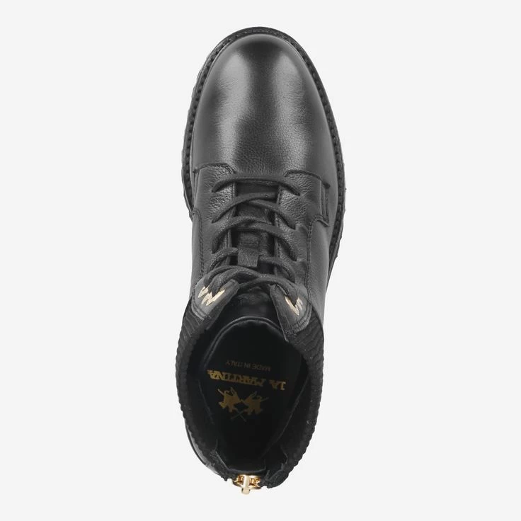 Diese italienischen Designer-Boots von La Martina verkörpern den Lifestyle von Luxus, Exklusivität und langjähriger Tradition. Die Manufaktur stattete einst die Universitätsteams von Harvard, Yale, Oxford und Cambridge aus, Sie genießen präzise Verarbeitung und den höchsten Qualitätsstandard. Das schwarze Glattleder ist durch goldfarbene Ösen, edle Logoprägungen sowie einem angenehmen Stretchbereich im Schaft veredelt. Gönnen Sie sich puren Luxus!