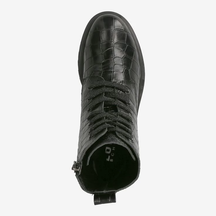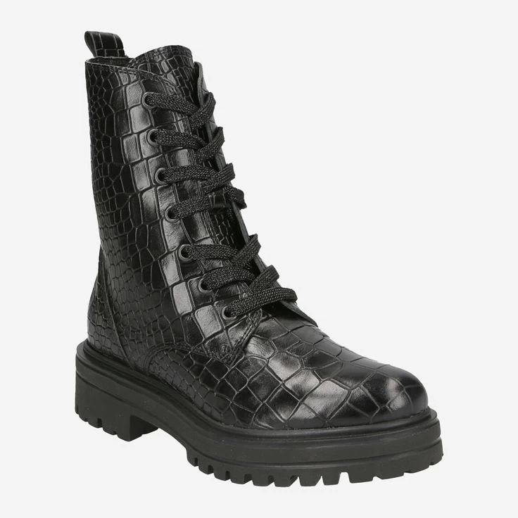 Diesem rockigen Plateau-Boot „wollen“ Sie gar nicht widerstehen! Das tief-schwarze Leder ist in Reptiloptik geprägt und durch eine super leichte Sohle ergänzt. Der klassische Arbeiterstiefel ist hier einfach genial interpretiert worden! Der praktische Reißverschluss rundet den Schuh auch in Sachen Komfort ideal ab.