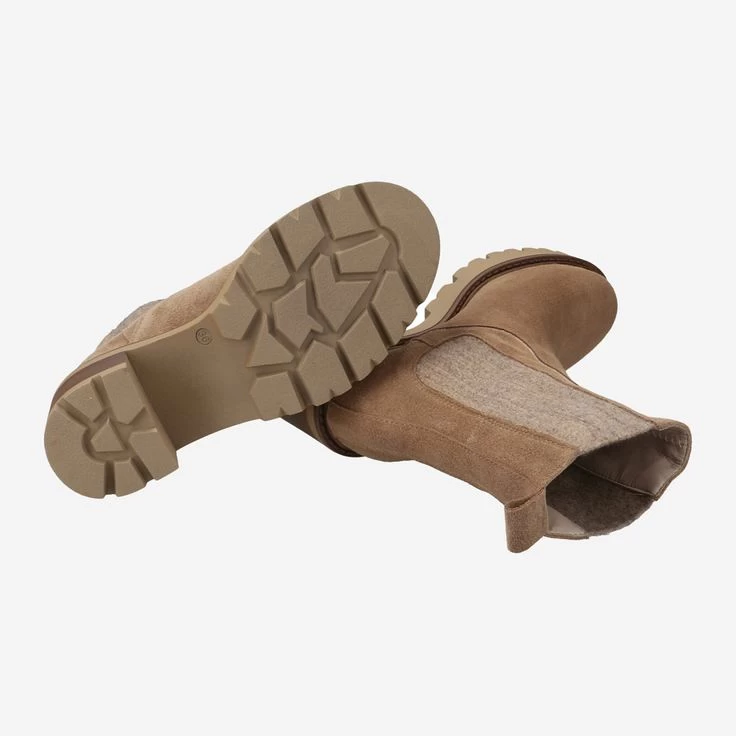| Merkmale | Blockabsatz, Plateausohle, Stretcheinsätze, Einstiegschlaufe, braun melierte Stretcheinsätze in kuscheliger Strick-Haptik, atmungsaktiv |
