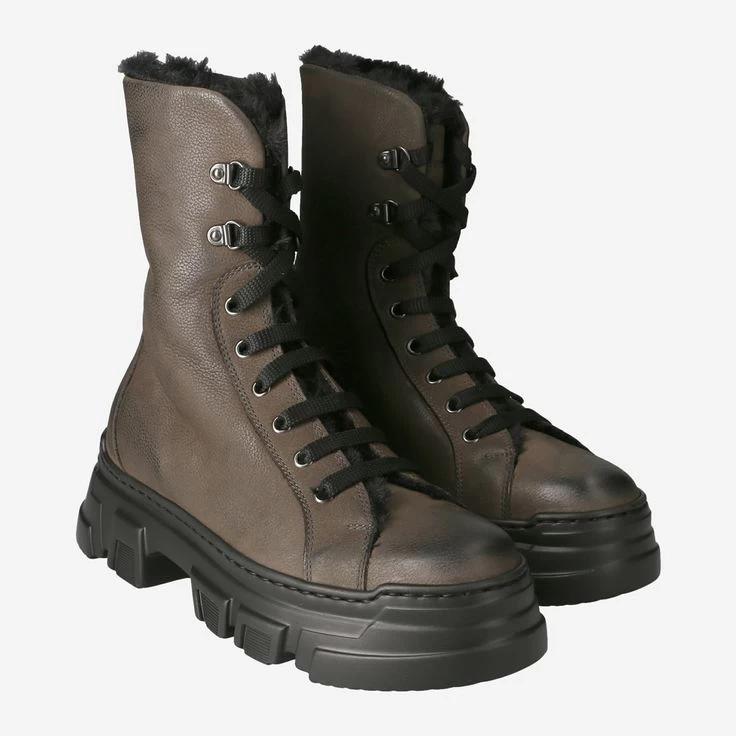 So macht Fashion richtig Spaß! Mit diesen angesagten Statement-Boots von NoClaim genießen Sie trendstarkes Plateau, hochwertiges, grünes Nubukleder und ein kuscheliges Warmfutter aus pflegeleichtem Polyester (100%). Hier treffen Stilelemente des Industrial-Looks (Sohle) auf rockiges Design des Worker-Boots. Genau so entsteht ein spannender Look!