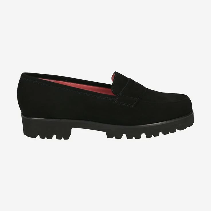 Schwarze extraleichte Damen Slipper von Gritti Pas de Rouge aus Veloursleder. Angenehmes Lederfutter, die Lederdecksohle sowie die profilierte Gummisohle sichern einen hohen Komfort. Ein ca. 30 mm hoher Blockabsatz rundet das Gesamtbild harmonisch ab. Leistenform: Marta.