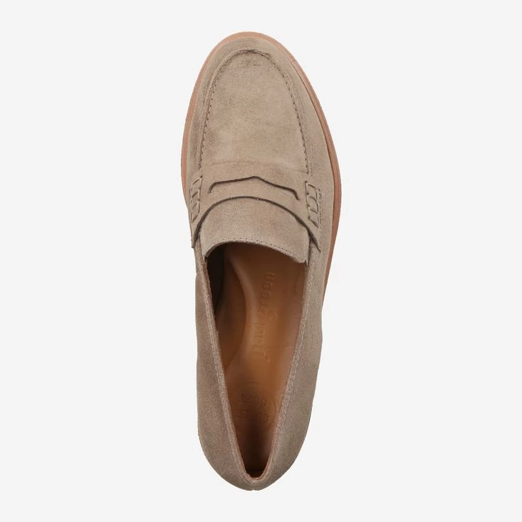Dieser beige Loafer ist ein Meilenstein – neu interpretiert in angesagtem Look! Paul Green setzt bei diesem Penny-Loafer auf traditionelle Elemente, und frischt den Look durch eine hellbraune Kontrastleiste, sowie leichtem Plateau auf. Das hochwertige Veloursleder ist ein Kombinations-Genie! Und im Nu gelingt Ihnen ein gekonnter Spagat zwischen Fashion-Bloggerin und Business-Lady! Besonders clever: Durch die verdeckten Stretcheinsätze und der gepolsterten Fersenkappe aus butterweichem Leder trägt er sich traumhaft bequem!