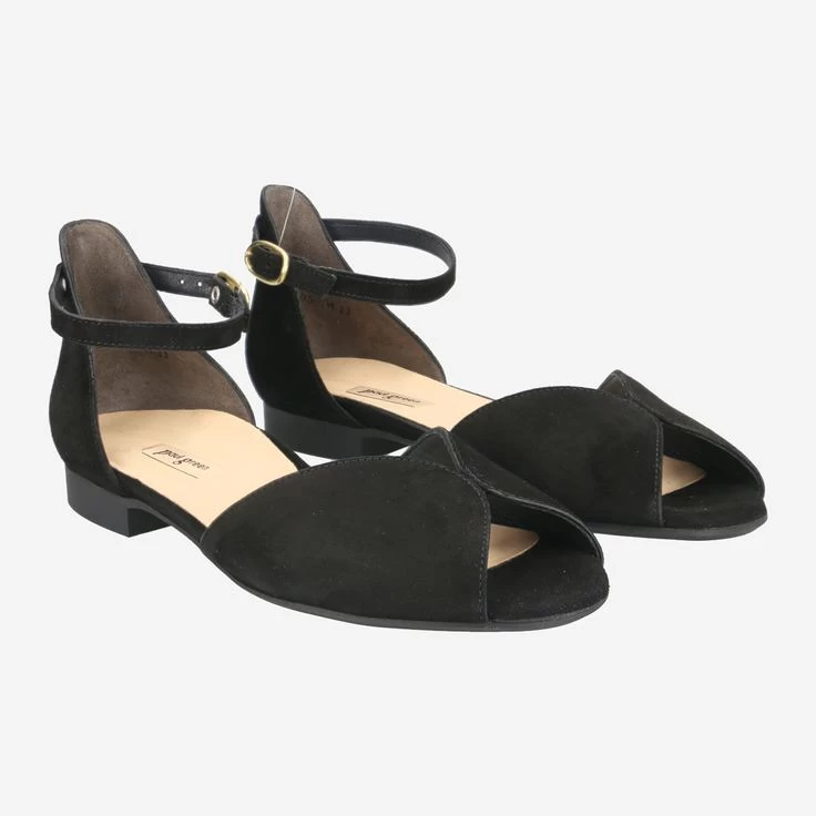 Diese edlen Sandalen von Paul Green sorgen für klare Schnittführung mit attraktivem Look. Softes Samtleder in Schwarz steht im Fokus des Designs. Ein hübscher Fesselriemen mit edler Schließe und Druckknopf bietet perfekten Halt. Eine feine, gummielastische Laufsohle sorgt für hervorragendes Tragegefühl. Ein charmantes Duo zu vielen Outfits!
