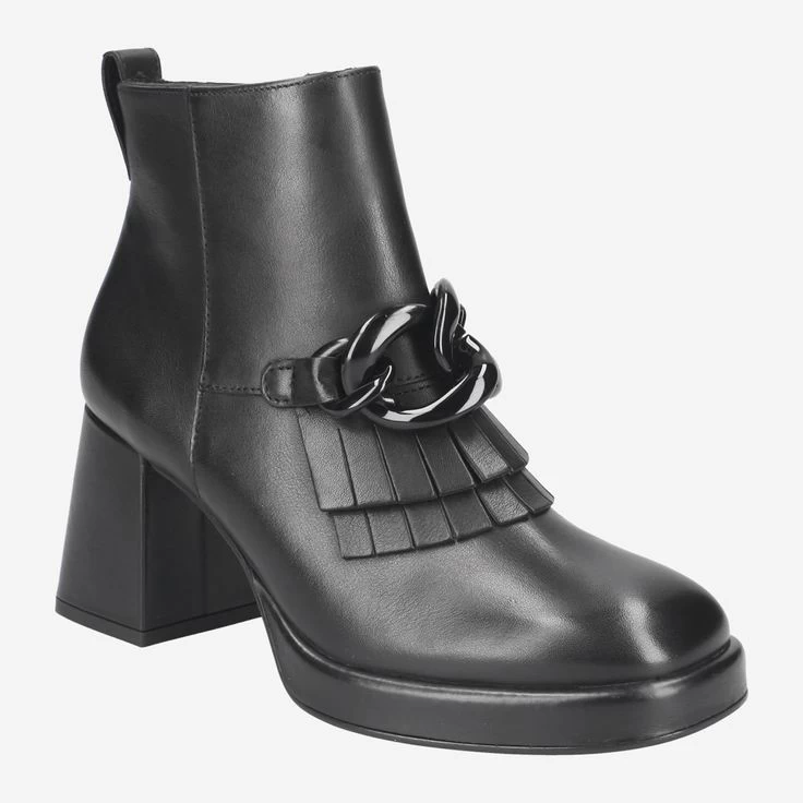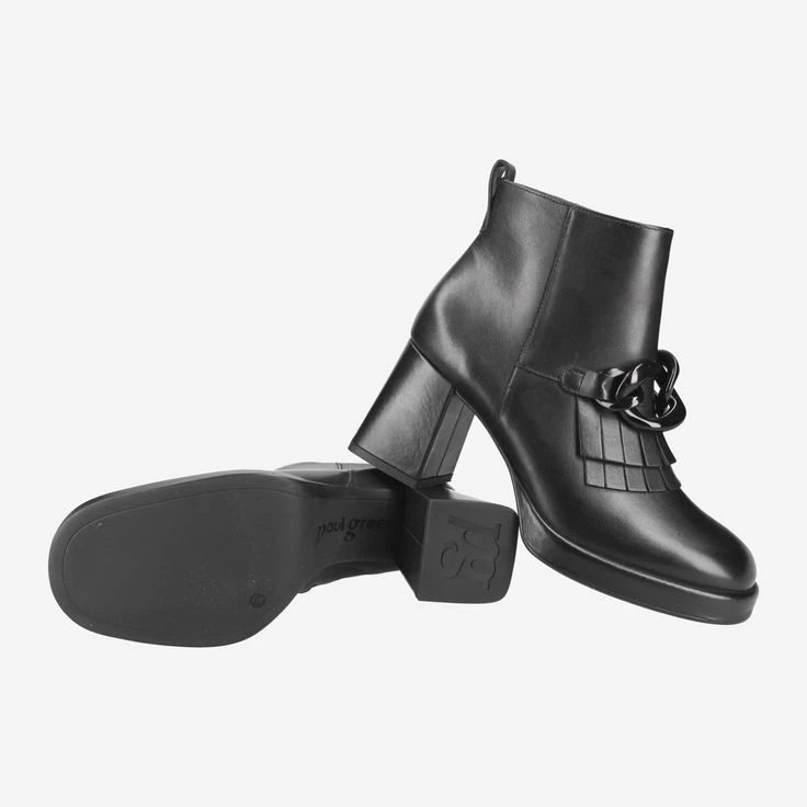 Stylisch und edel präsentieren sich diese Stiefeletten von Paul Green. Das puristische Design aus schwarzem Glattleder betont eine tonale Schmuckkette und edles Fransendetail um den Ristbereich. Ein angesagter Blockabsatz mit leichter Plateausohle sorgt für absolutes Fashion-Statement. Lassen Sie sich modisch begeistern!