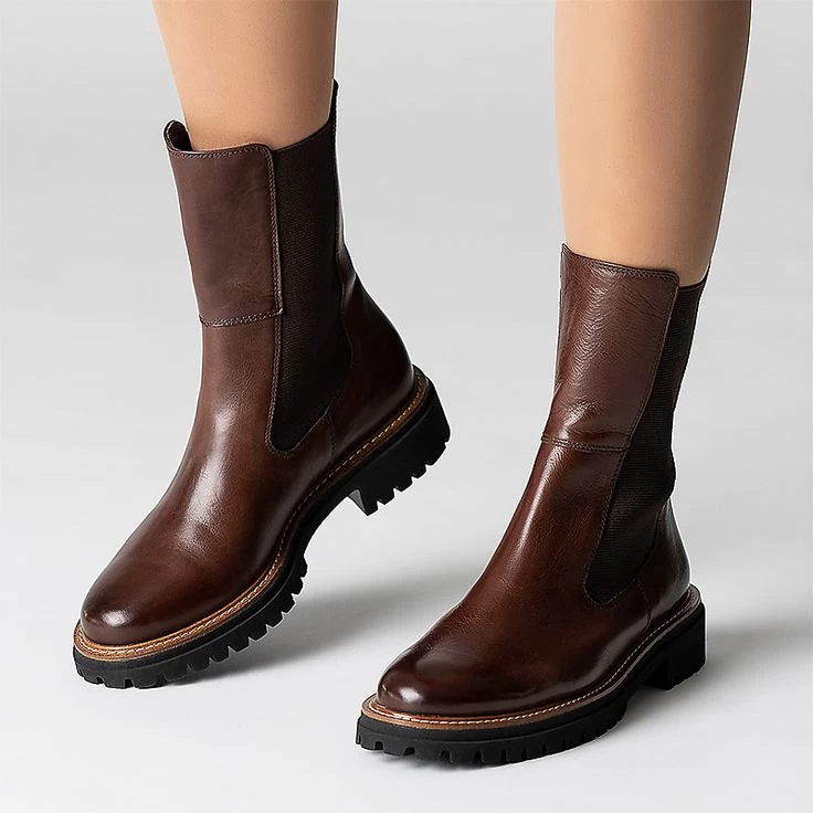 Paul Green interpretiert mit diesem Modell den klassischen Chelsea-Boot auf eine besondere Weise: In schokoladen-braunem Glattleder, und mit tollem Plateau, wirken die hoch geschnittenen Boots sehr elegant. Durch die Stretcheinsätze ist er darüber hinaus auch noch sehr bequem. Die Einstiegsschlaufe ist praktisch und rundet den Look perfekt ab.