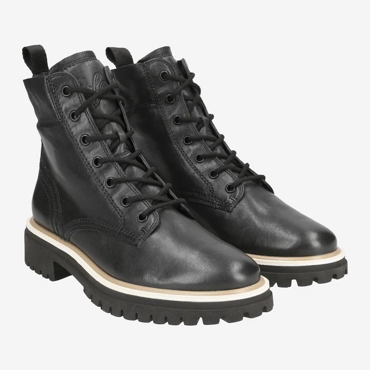 „I feel – good“ (ich fühl mich gut) ist das Motto dieser lässigen Schnürstiefelette von Paul Green! Ein geniales Motto, und ein richtig angesagter Look obendrein! Das Design ist an den angesagten Worker-Boots orientiert, das Paul Green lebendig interpretiert! Das schwarze Glattleder ist durch die helle, zweifarbige Kontrastleiste optimal in Szene gesetzt, und frischt das Gesamtbild gekonnt auf! Das Innenfutter aus Leder und Frottee schenkt Ihnen angenehmen Komfort und Polsterung.