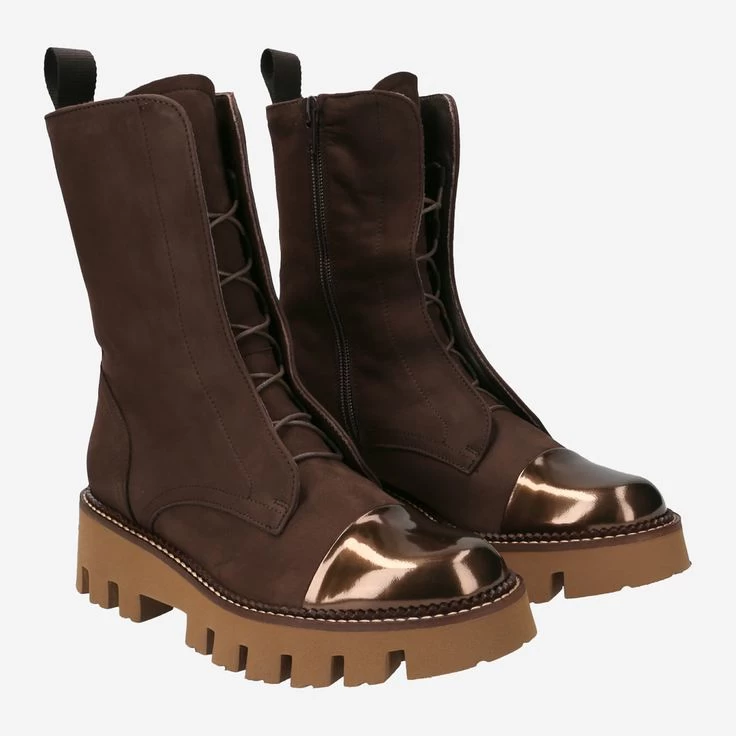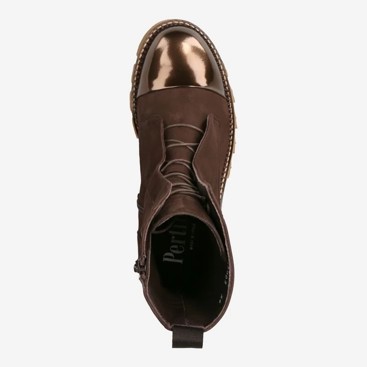 Lust auf ein Style-upgrade? Na dann los – diese braune Stiefelette überzeugt durch die innenliegende Schnürung, rockigem Design sowie einer matallisierten Zehenkappe aus Lackleder. Die Marke Pertini verkörpert den einzigartigen Lifestyle einer Schuhmanufaktur aus Spanien. Ihre handgefertigten Schuhe vereinen traditionelles Handwerk mit modernem Design und sind somit ein Muss für alle Fashion-Enthusiasten. Die Liebe zum Detail und die sorgfältige Verarbeitung machen jeden Schuh zu einem Kunstwerk, das die Persönlichkeit seiner Trägerin unterstreicht.