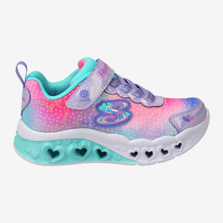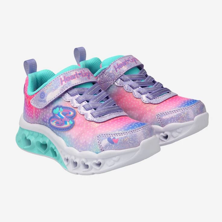 Ein Herz für Schuhe… und viele Herzen auf dem Schuh! Der FLUTTER HEART LIGHTS – SIMPLY LOVE Sneaker von Skechers ist ein bunter Traum aus Pink, Lila und Türkis – und verziert mit Sternchen und Herzen wohin das Auge reicht. Das Funkeln in Kinderaugen wird gespiegelt von dem Funkeln der auf Knopfdruck leuchtenden Herzen entlang der Sohle. So viele Details an diesem Schuh regen die Phantasie an und Ihr Kind bringt damit auf jeden Fall Farbe ins Spiel. Ein Herz für speziell diesen Schuh!