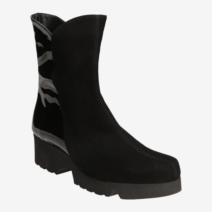 Lassen Sie sich von Thierry Rabotin verzaubern. Sinnliches Lackleder und samtiges Veloursleder fügen sich zu einem herausragenden Schuh zusammen. Der Materialmix ist ein echter Blickfang und überzeugt durch seine Hochwertigkeit. Auf dem 40 Millimeter hohen Blocksatz und dem Plateau aus Gummi mit Profil haben Sie jederzeit Grip und werden elegant in die Höhe befördert. Ideal für Frauen, die gerne etwas größer wären. Ein Reißverschluss erleichtert das An- und Ausziehen. Mode kann so praktisch und bequem sein.