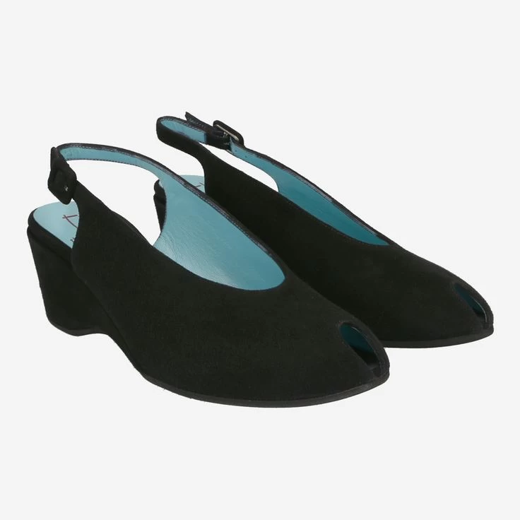 Schwarze Slingpumps von Thierry Rabotin aus handschuhweichem Veloursleder. Das bequeme Lederfutter sorgt für ein angenehmes Tragegefühl. Der Schuh verfügt über eine komfortable Gummisohle und einen lederbezogenen ca. 50 mm hohen Keilabsatz. Ein lederbezogener Metallverschluss erleichtert den Einstieg.
